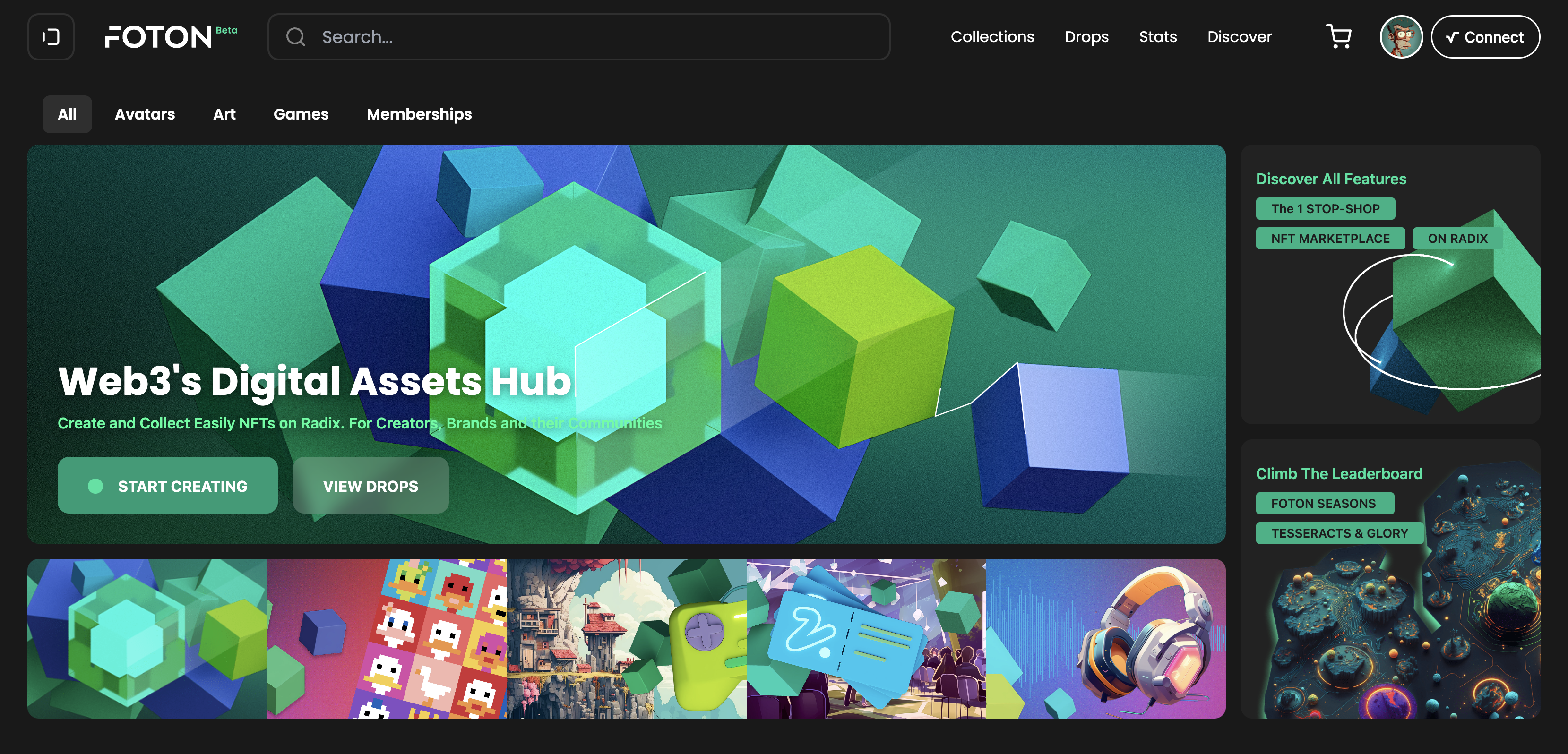 <figure><img src="https://1250681717-files.gitbook.io/~/files/v0/b/gitbook-x-prod.appspot.com/o/spaces%2FmO4j62008bVwxG1t1i0I%2Fuploads%2FOOON5u46Piy0sYNmYnzg%2FFOTON%20NFT%20Marketplace%20on%20Radix.png?alt=media&#x26;token=b431b87b-dff1-4057-8c60-c4337272175e" alt=""><figcaption><p>The homepage of a new kind of Web3 Marketplace</p></figcaption></figure>
